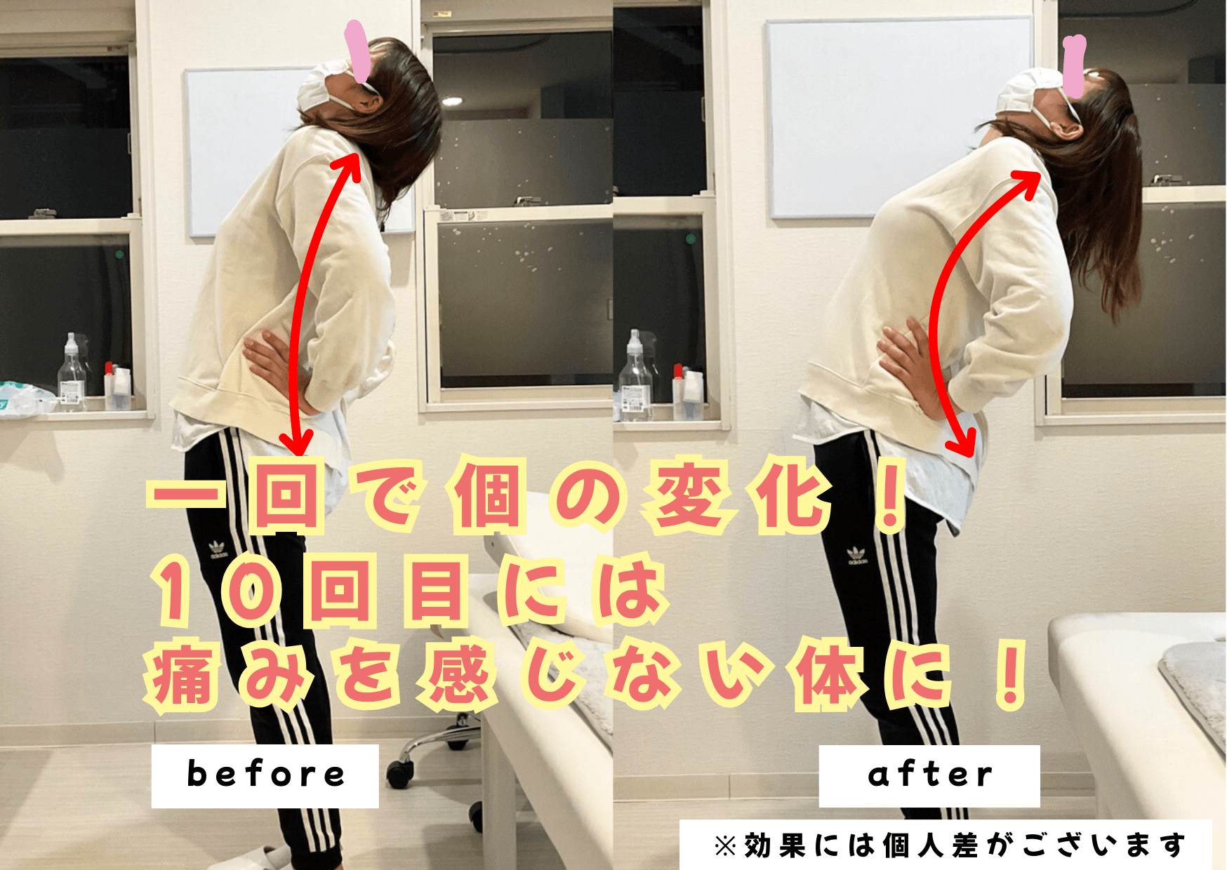 初回の施術からお身体には大きな変化が見られましたが、特に変化を実感されたのは、通院を重ねて10回が経過した頃でした。