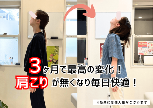 一番のお悩みであった肩こりを解消するため、まずは全身の筋肉と骨格を整えることからスタートしました。