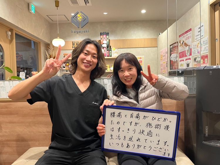 腰痛と頭痛が酷かったのですが、 施術後はすっきり快適に生活を送れています。 いつもありがとうございます! ※効果には個人差がございます。
